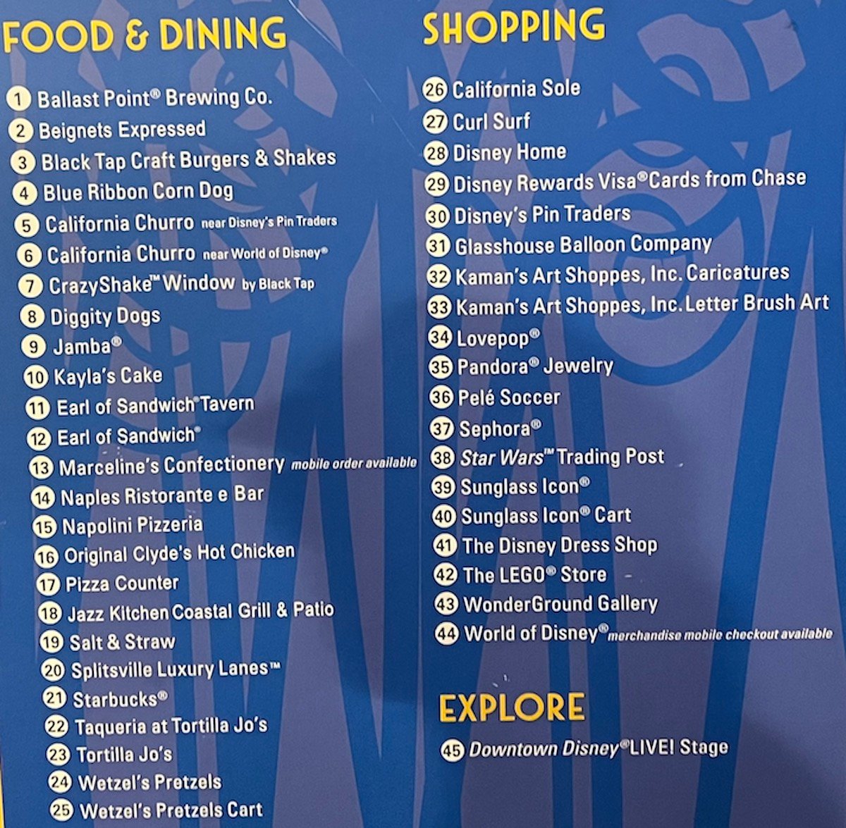 Be sure to check out our guide to Downtown Disney for a description and thoughts on each location, including details on the Downtown Disney reimagining that will include new dining, shopping, and entertainment experiences. You can see a map of Downtown Disney below with a full directory below: