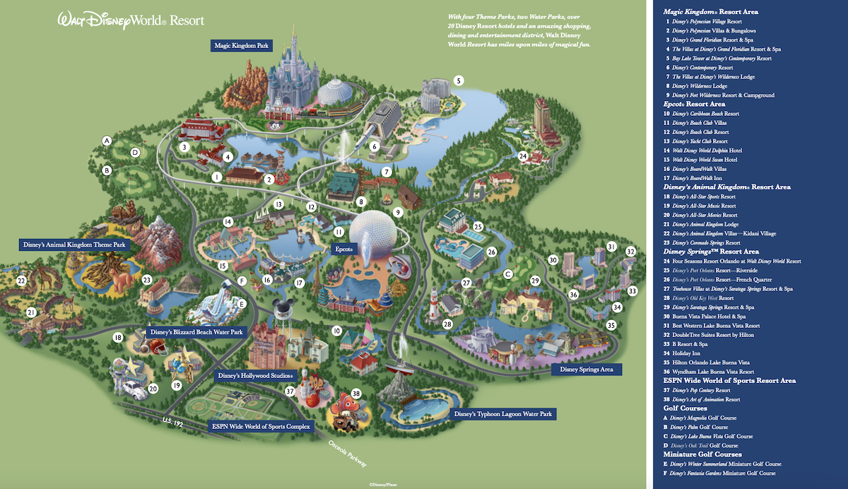 Overall Walt Disney World Resort Map With Hotels, Theme Parks, Water Parks