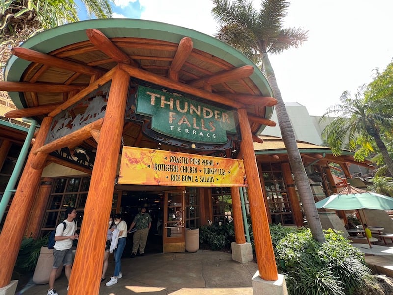 In Universal’s Islands of Adventure, there is a hidden gem for lunch. Tucked back near the Jurassic Park River Adventure boat ride, the Thunder Falls Terrace has a unique set of meal options that I really enjoy. Recently I tried the Roasted Pernil Combo. The pork plate comes with onion mojo, black beans, cilantro rice, sweet plantains, and a milkshake. Pass the standard theme park fare by for this delicious option and find a table inside the air conditioned space. I like sitting by the window to watch the Jurassic Park River Adventure splashdown outside the window.
