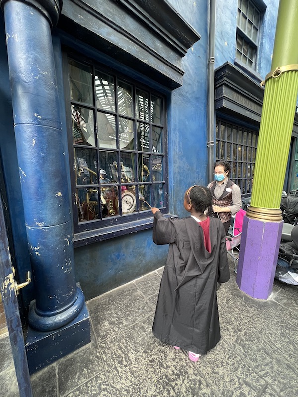 - If Harry Potter is a priority, especially the spells in the areas with a wand, go here first. We prioritized Harry Potter so we started our day at Universal Studios Florida and went straight to Ollivander's in Diagon Alley. After we had bought our wands we spent some time doing the spells. This was a good choice because within two hours of park opening every ‘wand spot' had a small line and it was a bit crowded to try and do them. Doing the spells first thing in the morning gave us more room and time to enjoy them.