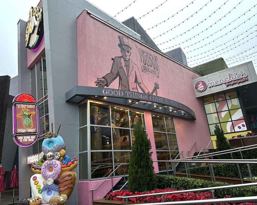 CityWalk is also home to an outpost of Voodoo Donuts. This donut shop boasts mischievous decor and interesting flavors (cookies and cream with oreos, pineapple). It is surreal for me to see the shop open at both Universal Orlando and Universal Studios Hollywood because I have been to the original location in Portland, Oregon.